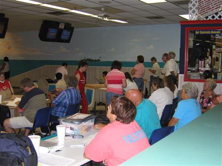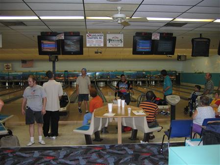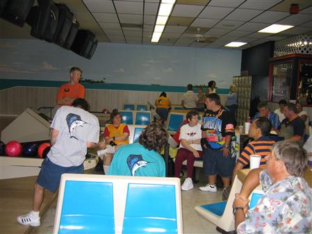 The KCOS and the Key Club of MC were the primary volunteer sources for the MC Special Olympics bowling competitions for many years. Here, Kiwanians attending included President Peyton Collins, Ed Kotch, Lyn Marino, Tanner Eng, Pat Grassick, Barbara Essenwine, and Bob Burson.